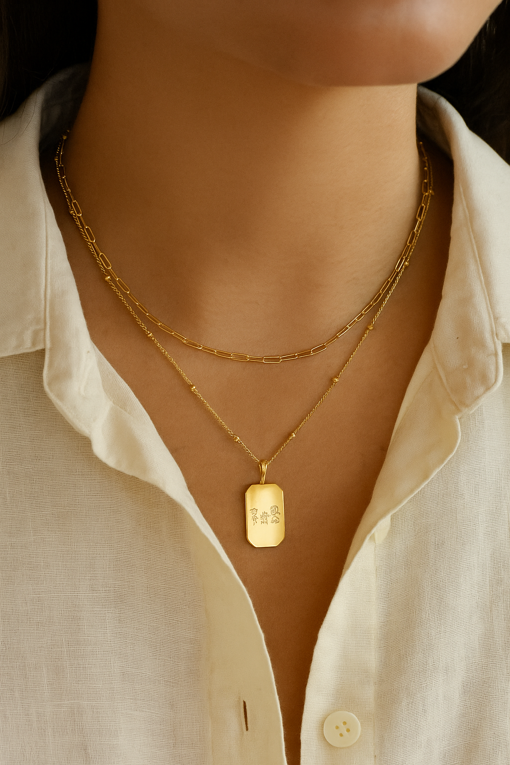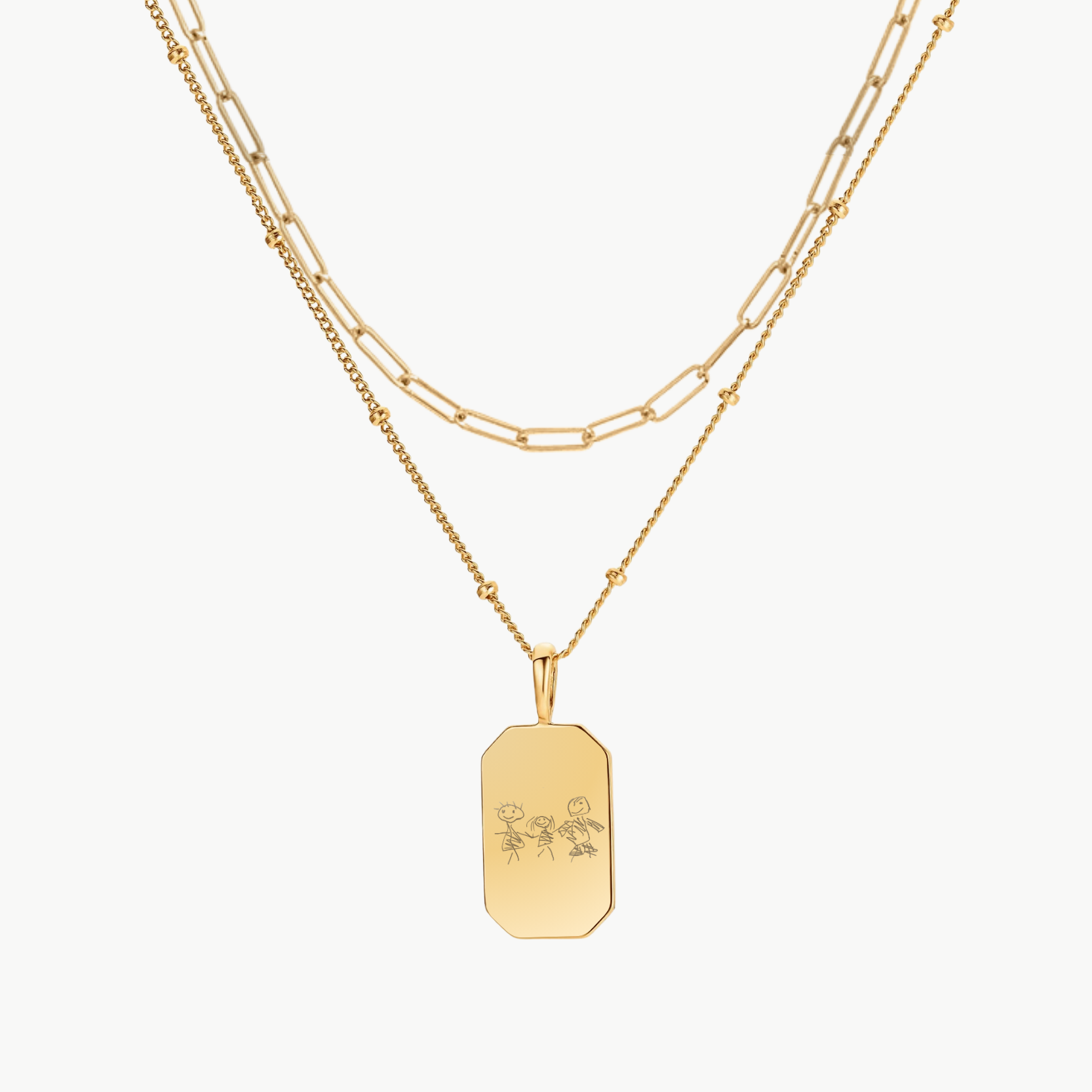 This set pairs your one-of-a-kind Drawing Tag Necklace with the sleek edge of our Paperclip Chain for a stack that’s personal and powerful. Whether it’s a child’s sketch, a heartfelt doodle, or your own design, your drawing becomes a golden keepsake worn your way.