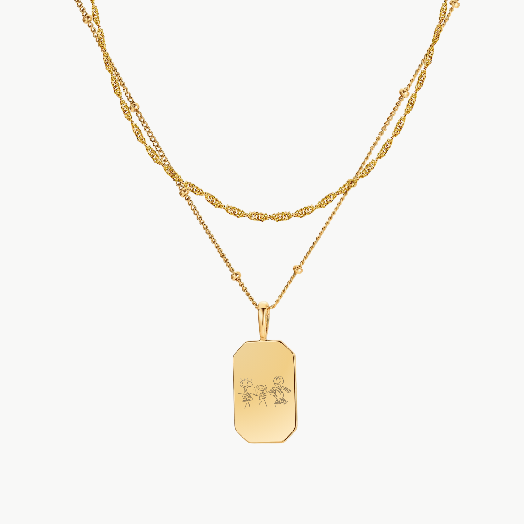 This delicate set brings your engraved Drawing Tag Necklace together with the light-catching Singapore Chain for a look full of love and meaning. Whether it’s a child’s drawing or your own design, this set turns creativity into a forever piece you’ll treasure daily.